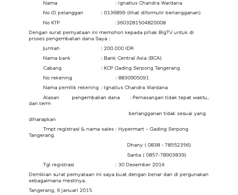 Semua biaya dan pengeluaran harus dicatat dengan baik dan benar, dan bisa dipertanggung jawabkan oleh pihak yang bersangkutan. Contoh surat permohonan pengembalian kelebihan dana kartu kredit. Contoh surat permintaan cuti bersalin pns. Mohon untuk diproses pengembalian dana tersebut dapat dikirimkan ke rekenin aston sebagai detail di bawah ini: Khusus untuk metode refund melalui transfer ke rekening bank milik atau yang kamu tunjuk, jangka waktu pengembalian dana akan dihitung setelah kamu memberikan memberikan nomor rekening kepada kami. Bahwa saya yang bertanda tangan di bawah ini : Namun masalah ekonomi yang tidak dapat diprediksi terkadang berimbas pada kegiatan sekolah atau perkuliahan. Contoh surat pernyataan refund involve some pictures that related one another. Contoh surat pengembalian dana bos.doc : Contoh surat pernyataan pengembalian dana beasiswa: Contoh surat pernyataan salah transfer uang via www.neodv8.co. Dengan surat pernyataan ini memohon kepada pihak bigtv untuk di proses pengembalian dana saya : Demikian contoh surat perintah perjalanan dinas sppd yang dapat saya bagikan semoga bermanfaat.