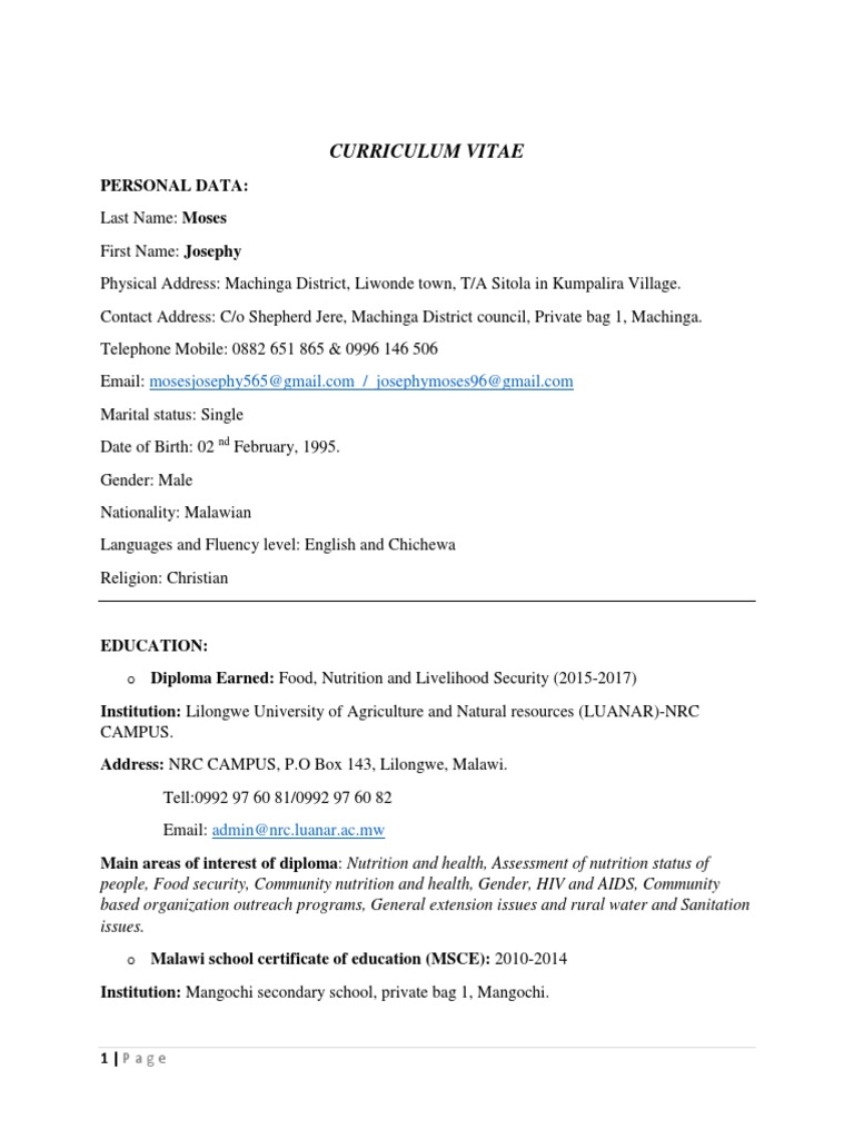 All your essential driving experience won't amount to much if it's not clearly organized on your cv format or resume template. 4 this cv can be signed by a senior representative of the consultant provided that if the consultant's proposal is ranked first, a copy of the cv signed. A cv is a factual summary of your total career history, education, skills and experiences that you have gained thus far. Home » unlabelled curriculum vitae malawi doc / curriculum vitae malawi doc dean cv april 2016 modele de cv gratuit iltroppostroppiablog / this classic. Team leader on implementation of the private sector initiatives component, part of the danida agricultural sector support programme, phase ii.